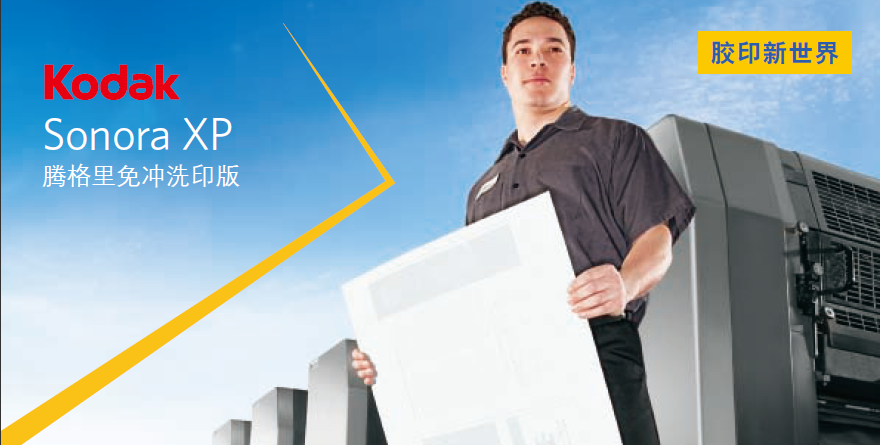 可以说免处理CTP版材代表着目前印版行业最高的技术产品。而柯达新一代的腾格里免冲洗印版便属于免处理CTP版材范畴。免处理CTP版材,顾名思义就是版材经过CTP曝光后,无需处理,便可直接上机印刷。腾格里免冲洗印版由于在制造工艺上的改进,完全杜绝了印版冲洗,将制版所需的冲洗和药水去除,取消了冲洗设备,减少制版所需的步骤,节约生产空间。可以说腾格里免冲洗印版不仅帮助企业取消制版环节所需的化学药剂、水、能源和废物,印刷时还可使用再生纸张和纸板,以及不含酒精的润版液,打造真正的“绿色”印刷。