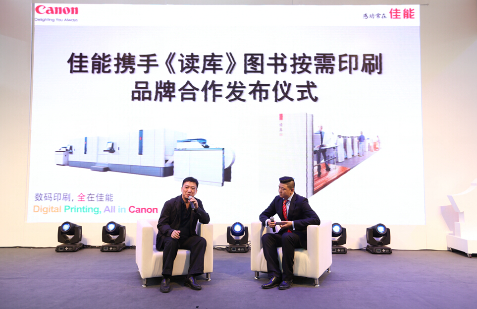 在2014中国国际全印展上,佳能宣布与国内著名综合性人文社科读物《读库》达成合作关系,通过高品质的佳能数码印刷产品及按需图书印刷解决方案,为《读库》的个性化图书出版提供全程支持!