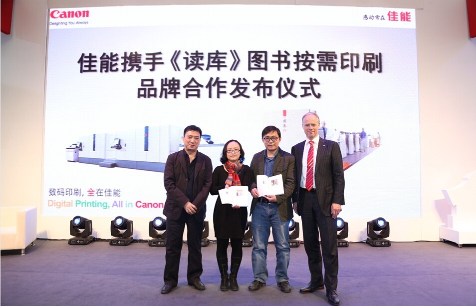 佳能(中国)有限公司副总裁韦海恩与《读库》主编、国内著名出版人张立宪共同出席合作发布仪式。双方此次携手,可以看作是开拓国内按需图书印刷市场的一次积极尝试,新的按需出版业务模式也将进一步加快图书出版产业的升级进程。