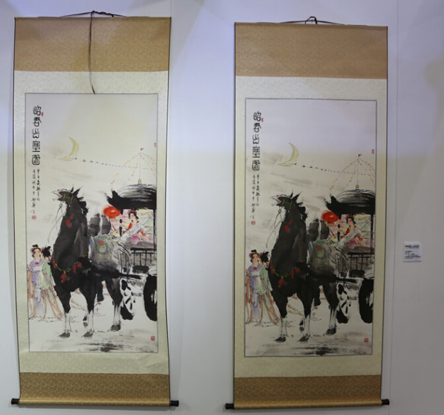 回过神来,小佳马上为各位发奖!还记得前天的互动活动吗?下面两幅《昭君出塞图》左边的是手绘原作,右边的才是由Canon iPF8410打印出的,所以正确答案是:【右】哦,是不是很难辨认?猜对的三名佳友老王喜欢拍照、黄灿晨灿老师、亮亮将每人获得一本刚刚打印出的《读库》,快将你们的“微信号+姓名+手机号+收件地址”于72小时内发送至Canon佳能官方微信吧!