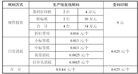 表1:条码赋加方式对比表