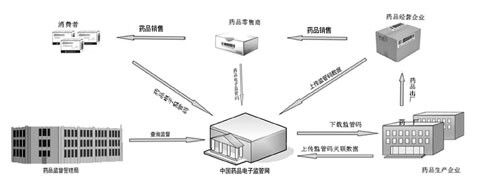 在药品电子监管码系统运行过程中,中国药品电子监管网和生产企业赋码系统是最为关键的。药品电子监管网是一个统一的、覆盖全国的药品监管系统,其可实现:①药品从生产出厂、流通、储存直至配送给医疗机构全过程都能在药品监管部门的监控之下;②实时查询每一盒、每一箱、每一批药品生产、经营、库存以及流向情况,遇有问题可以迅速追溯和召回;③各企业超资质生产和经营预警,药品销售数量异常预警,药品发货与收货数量和品种核实预警,及时发现药品是否流失;④药品监管人员可以通过上网或手机便利地在现场适时稽查;⑤消费者可以通过网站、短信、电话对监管码进行终端查询。可以获得生产日期、生产批号、有效期等有效信息,进行药品真伪的查询。