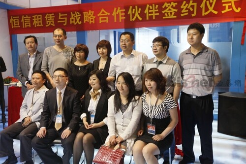 恒信金融租赁有限公司(以下简称恒信金融租赁)于2011年4月10日上午十点半在其3号馆的展位上举行了与客户开展融资租赁合作的签约仪式。恒信金融租赁的长期合作伙伴北京盛通印刷股份有限公司、深圳市裕华兴印刷制品有限公司等众多客户都出席了签约仪式。北京盛通印刷股份有限公司总经理栗延秋代表合作伙伴致词,恒信金融租赁副总裁郑威女士与印刷事业部总经理侯宏华先生出席了签约仪式并致辞。