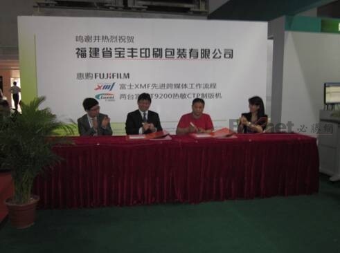 本次签约的印刷企业是福建省宝丰印刷包装有限公司,成功购买了富士XMF先进跨媒体工作流程和2台富士T9200热敏CTP制版机。