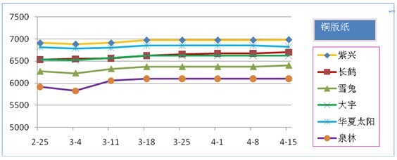 图表一:一周铜版纸市场价格(单位:元/吨)