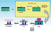 主曝光时,裸露在外面的光敏树脂层见光发生硬化反应,从而形成图像的潜像,有黑色材料遮盖的光敏树脂层不见光,也不发生光化学反应。