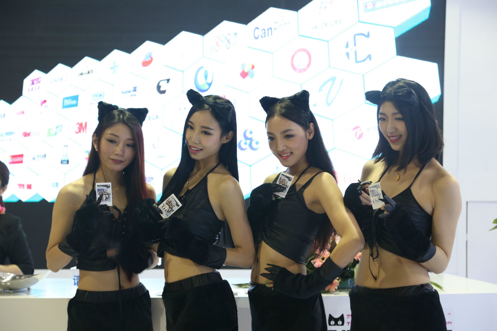 4名靓丽高挑的模特纷纷降临,现场玩转cosplay,受到不少观众的围观与追捧。