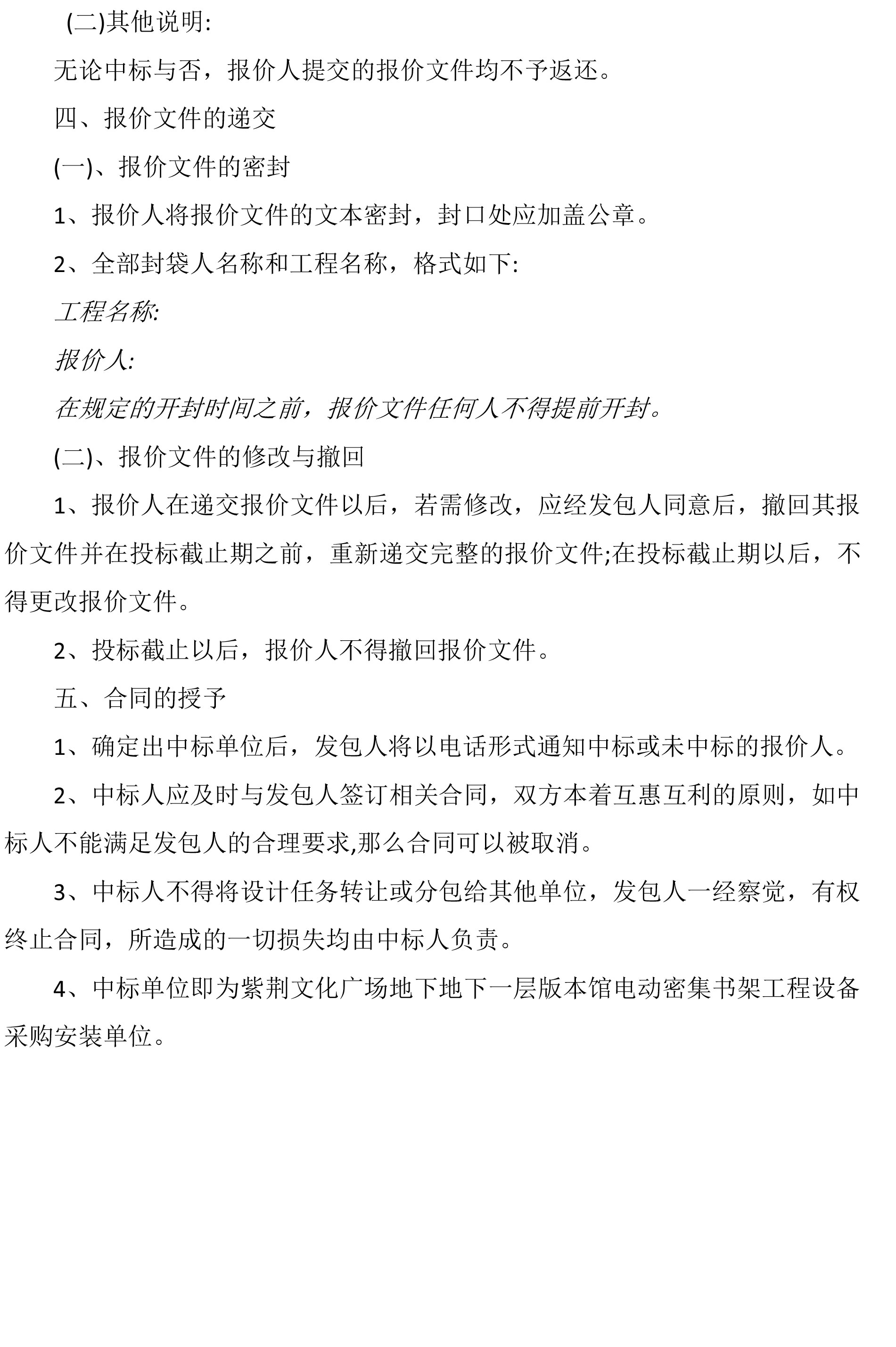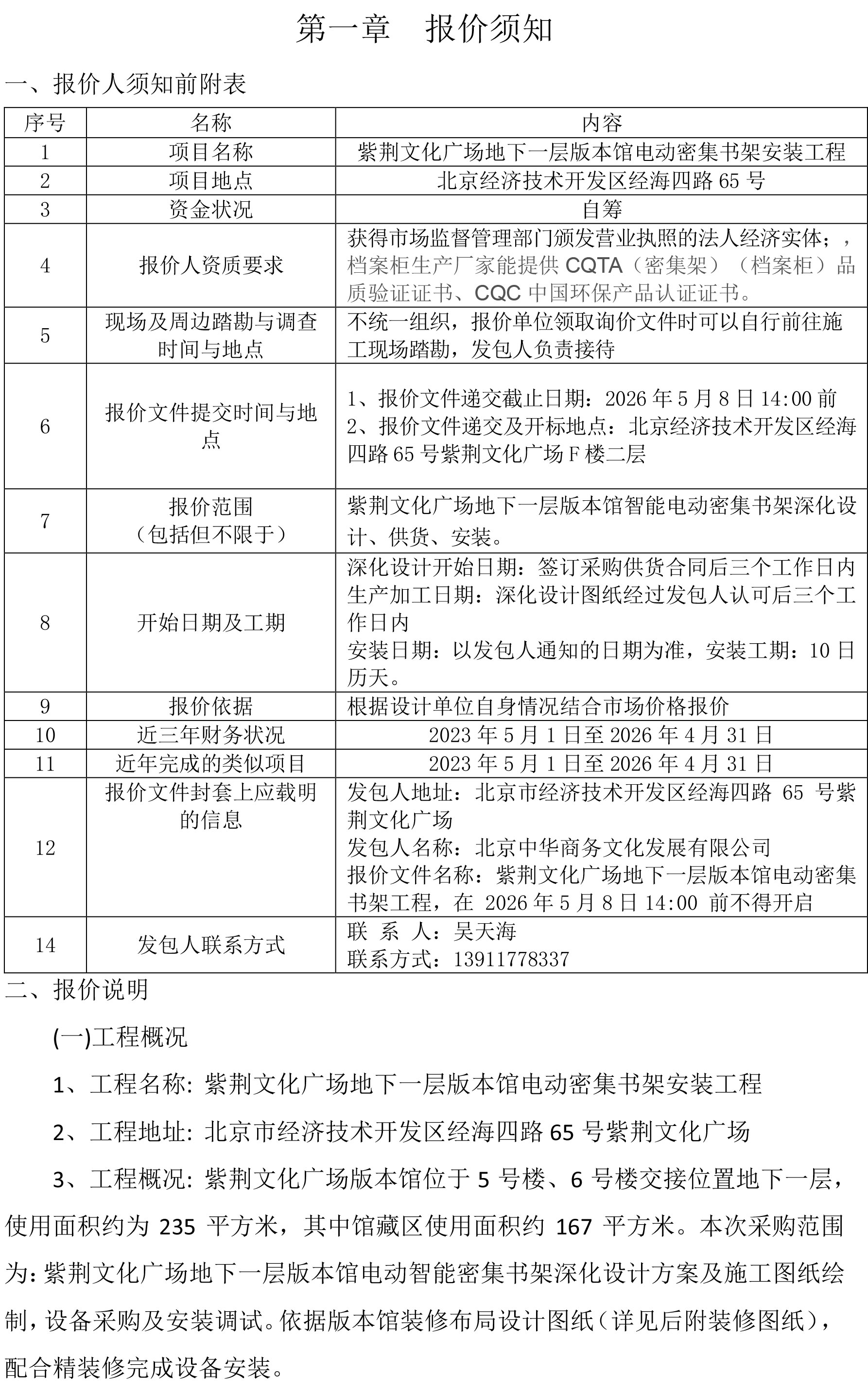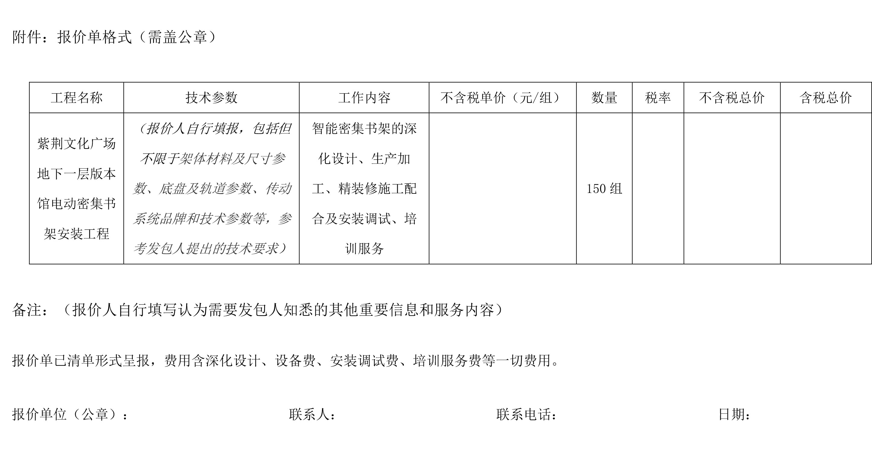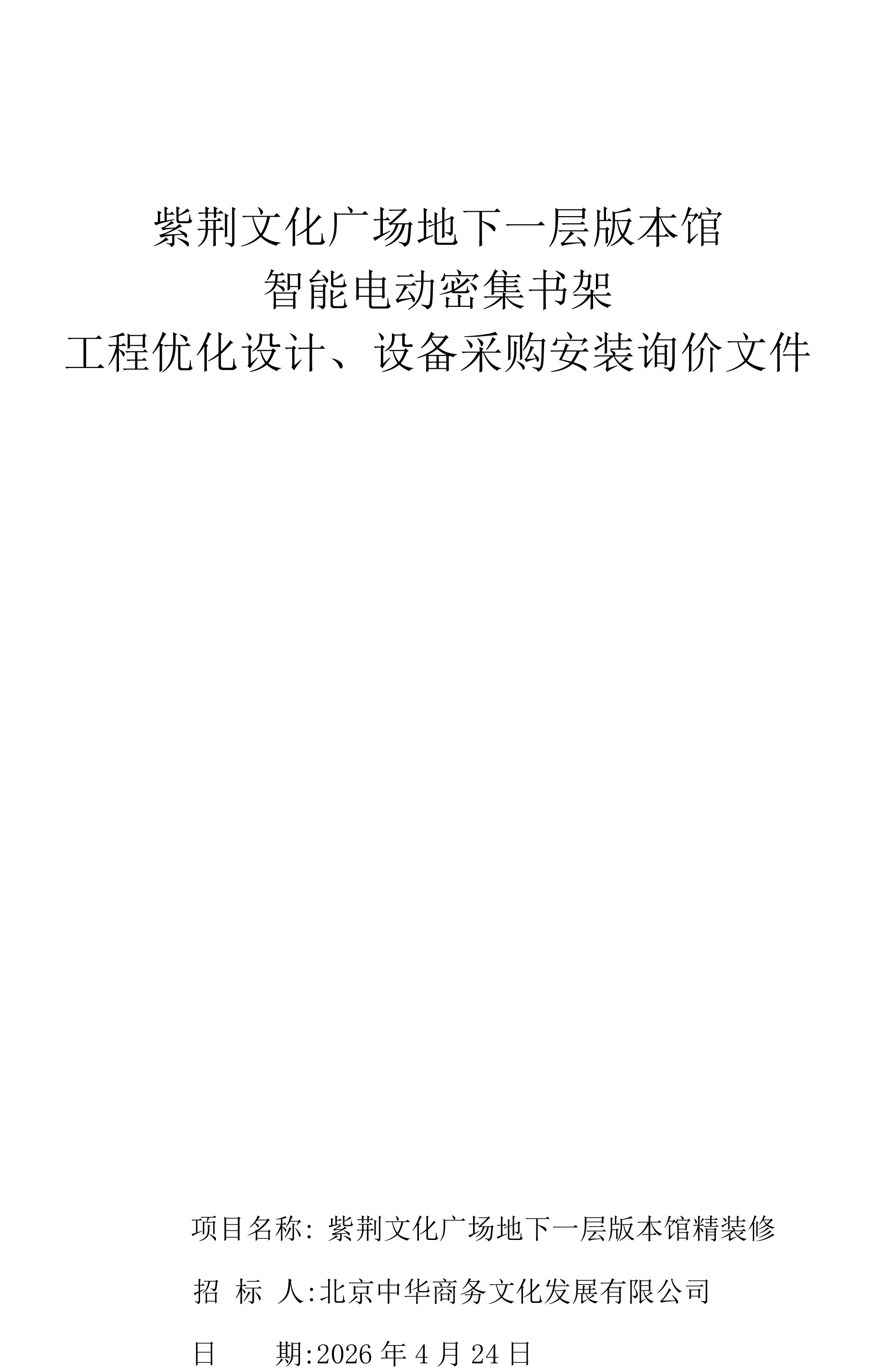 紫荆文化广场地下一层版本馆 智能电动密集书架 工程优化设计、设备采购安装询价文件