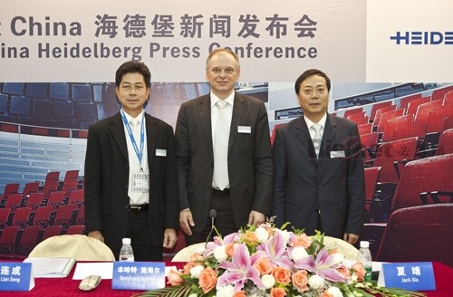 2011年4月8日下午,海德堡在广东现代国际展览中心3号馆会议厅隆重举办了2011年Print China印刷展海德堡新闻发布会,海德堡印刷机械股份公司董事会主席本哈特•施海尔、海德堡中国有限公司首席执行官蔡连成先生,以及海德堡中国胶印解决方案总监夏靖出席,全面生动地向来自全国的20多家印刷行业媒体精英们提前通告了海德堡对本次展览会的规划及展出内容安排,并发布了海德堡未来全方位推进中国印刷业发展的一系列新举措。发布会分为海德堡管理层演讲和现场答记者问两个部分,全程都气氛热烈,大家都对此次展会的成功举办和海德堡展区的精彩呈现充满信心。